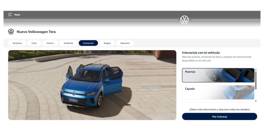 El enlace puede compartirse por WhatsApp u otros canales digitales para que los usuarios revisen todas las versiones y configuraciones a su ritmo. Al finalizar el recorrido, la plataforma dirige al usuario al configurador de Volkswagen para continuar el proceso de cotización.
